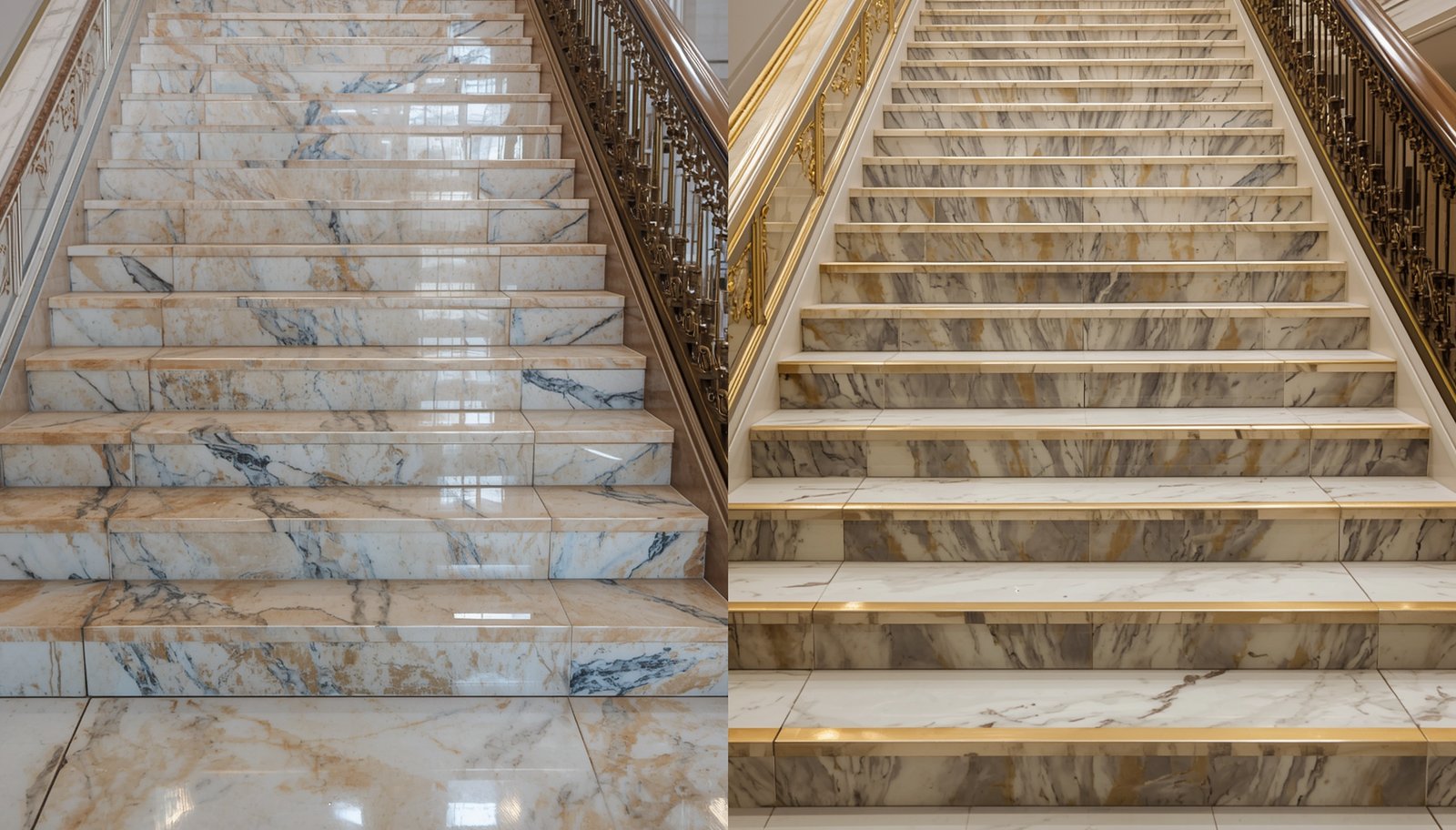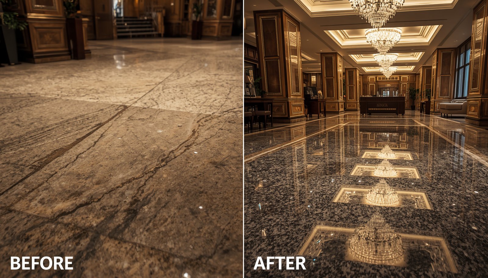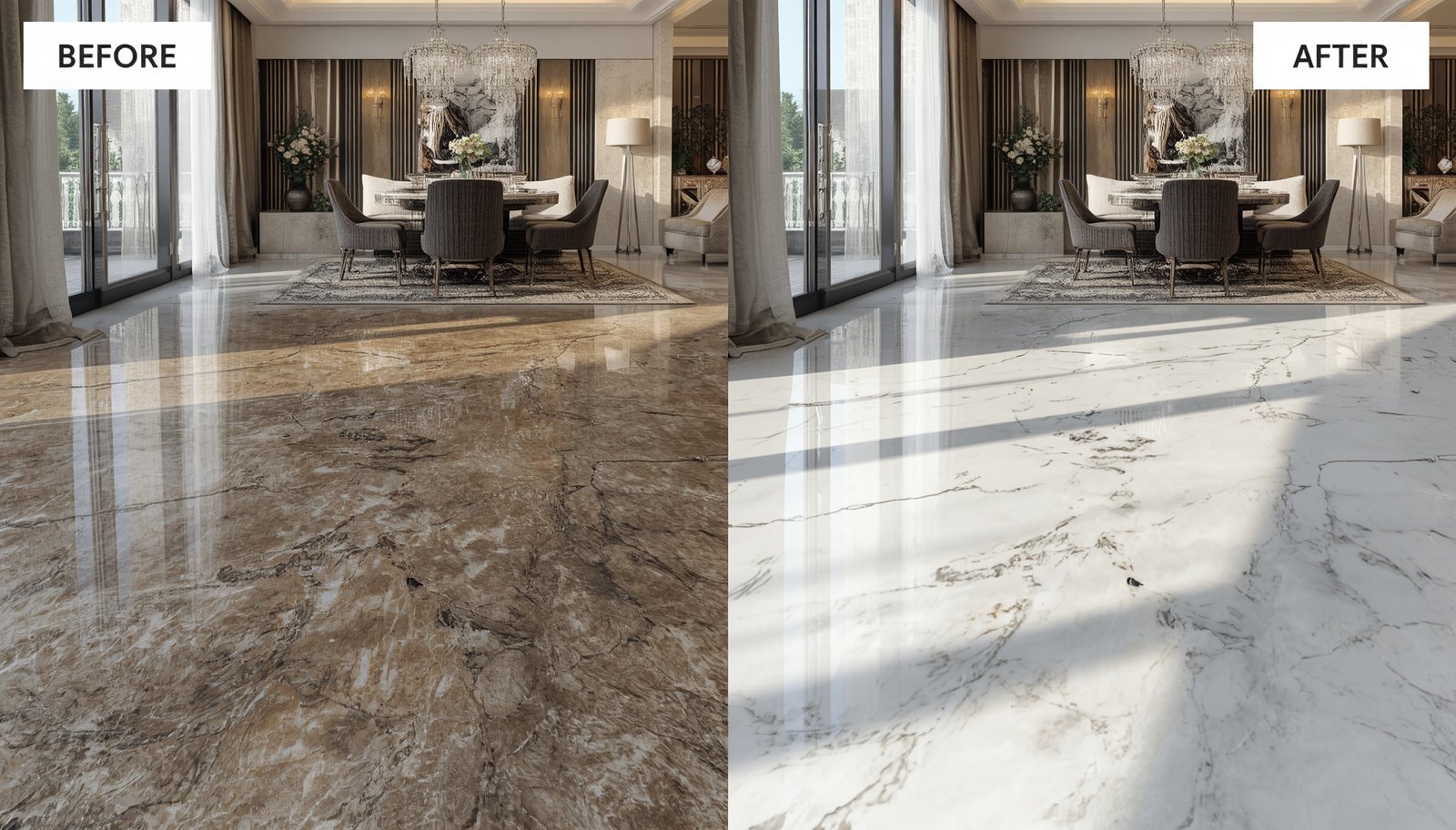 Grinding and polishing to remove scratches, stains, and uneven surfaces — restoring a high-gloss, mirror-like finish.
