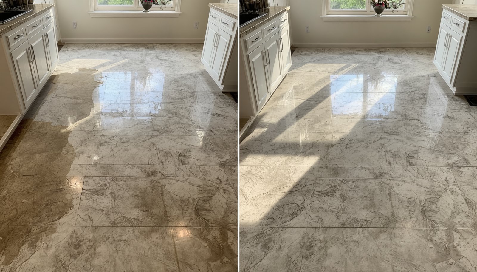 First, we clear the area and perform a deep clean to remove surface grit. For stone, we use metal-bond diamond discs to grind down "lippage" and remove deep scratches. For wood, this is the heavy sanding phase where we strip the old, tired top layer.